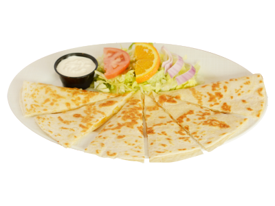 Your choice of meat: asada, chicken or pastor melted in a large flour tortilla, topped with mozzarella and cheddar cheese. Served with a side of sour cream.